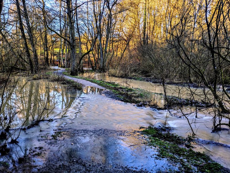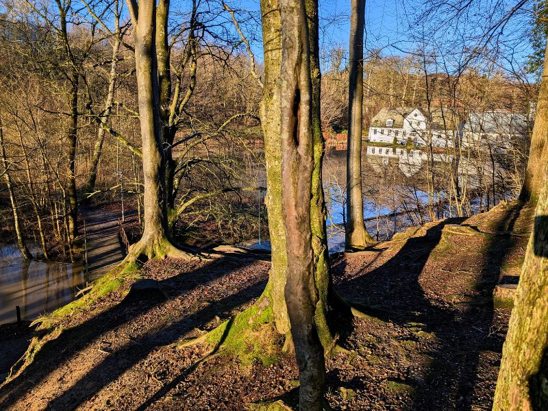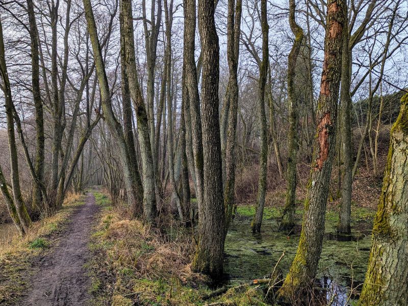 I går langs Dalby Møllebæk stien, en skøn grøn kile med skovklædt natur langs bækken, mod Svanesøen, der ligger omkranset af kolonihaveforeninger.